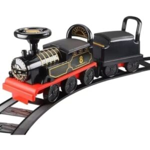 [Figoday] 大型トラック&列車おもちゃセット 音と光付き ライドオンカー 二人乗り対応 四輪スライドカー 幼児用 レトロデザイン 子供 男の子 女の子 乗用玩具 ギフトに最適 室内外兼用 安全設計 ([デラックスエディション] レトロ ブラック&ゴールド 機関車 + 幼児教育用客車 + 曲線線路16本 + 直線線路16本)