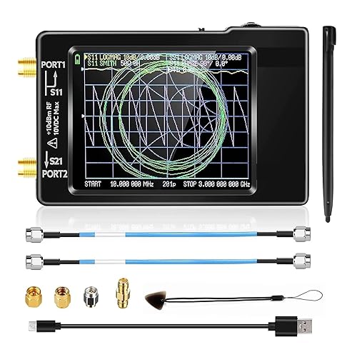 2.8インチNanoVNAは、50kHzから6.3GHzまでの周波数範囲を持つベクトルネットワークアナライザーです。データストレージ機能付きで、DIYアンテナ分析にも最適です。