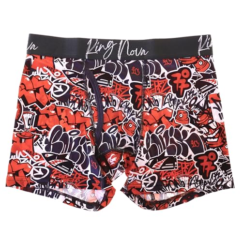 LL グラフティ ボクサーパンツ メンズ KING NOVAは、ストリートペイント風の落書きイラストが特徴的な前開きの男性下着です。独自のデザインで、スタイリッシュに決まるアイテムです。