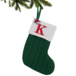 クリスマスツリーや階段にぴったりなイニシャル刺繍付きのストッキングです。グリーンとホワイトの季節感溢れるデザインで、特別なお祝いに彩りを添えます。