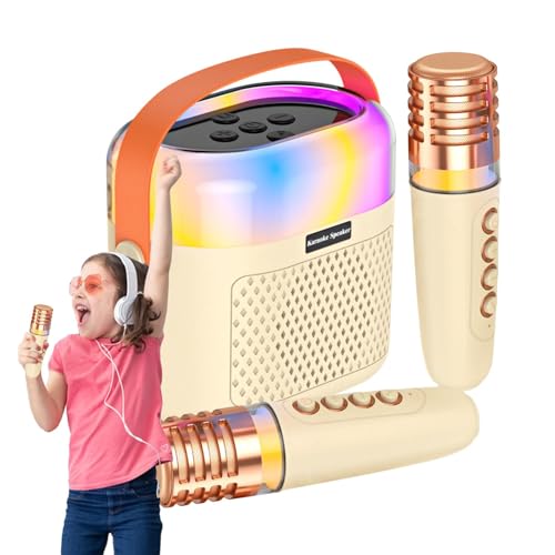 小型カラオケマシン、1200mAhバッテリー付き。ファミリー向けのカラオケセット。大人・子供向けで、まばゆいライトも搭載。楽しいカラオケ体験を提供!