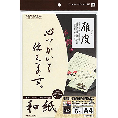 コクヨのインクジェット和紙(雁皮柄)は、独特の美しいデザインと質感が特徴です。インクジェットプリンタに適しており、高解像度印刷が可能。サイズはA4で、手紙や作品作りに最適です。