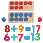 玉そろばん、数字カード、数え棒、計算表セットなどを含む、子どものための数学的感覚を育むモンテッソーリ風おもちゃです。足し算と引き算を楽しみながら学べます。