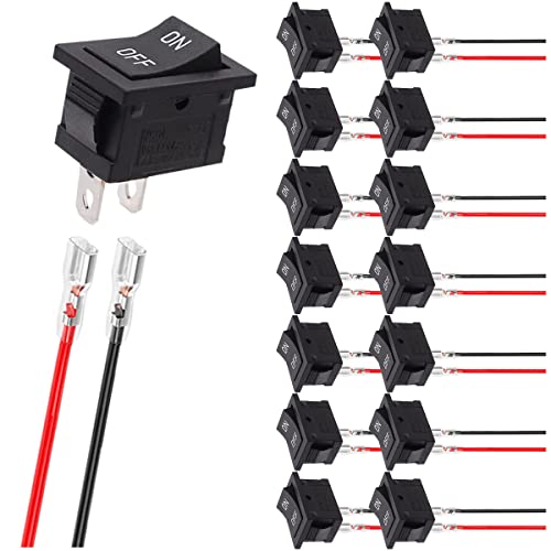 MKBKLLJY 15個 AC 6A 250V 10A 125V ミニブラックロッカースイッチ 2ピン 2ポジション SPST オン/オフ スクエアロッカースイッチ トグル ロック端子ワイヤー付き 車ボート用の製品情報