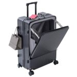 山善のキャリーケースフロントオープンLサイズ78Lは、軽量でストッパー付き。7泊以上の大容量で、USBポートやドリンクホルダーも完備。サイズは幅50×奥行29×高さ74cm、キャスター交換可、TSAロック搭載のブラックモデルです。
