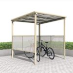 三協アルミのベルフラットは、コ型のパネル1段で、3面をカバー。端部柱タイプを採用し、ポリカーボネート板を使用。間口は22、型番はKLB-E2221C-K。自転車置場やサイクルポートとして最適です。色はブラック。