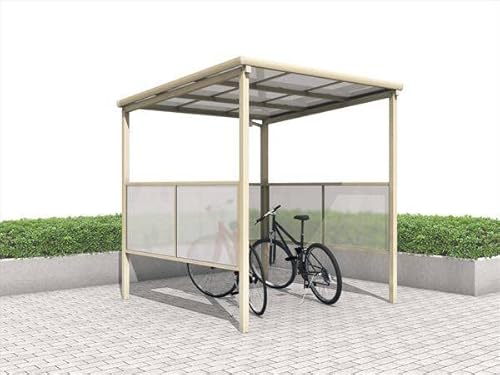 三協アルミのベルフラットは、熱線遮断ポリカーボネート板を使用した自転車置場です。端部柱タイプで間口14、パネル3面のコ型デザイン。カラーはブラックです。