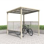 三協アルミ製のベルフラットは、パネル1段でコ型のサイクルポートです。3面を囲む端部柱タイプで、熱線遮断ポリカーボネート板を使用。間口22型のKLBS-E2221C-Tは、自転車置場や屋根として最適なブラック仕上げです。