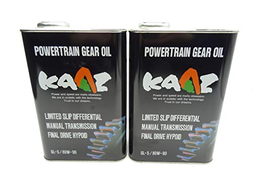 KAAZ POWER TRAIN GEAR OIL GL-5 80W-90は、優れた耐摩耗性と高温特性を持つギアオイルです。2L缶が2本セットで、軽自動車からトラックまで幅広く対応しています。