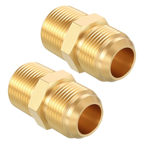 Kozeloの真鍮製六角ニップルホースコネクタは、3/4インチメスフレアから1/2インチメスNPTに変換可能。漏れ修理や工具延長に最適な2個セット。耐久性と信頼性を兼ね備えたパイプアダプタです。