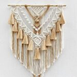 Kaahiraマクラメボーホータペストリーは、ハンドメイドのボヘミアンアートで、寝室やリビング、オフィスに最適。ユニークなギフトにもおすすめのベージュ色の壁掛け装飾。