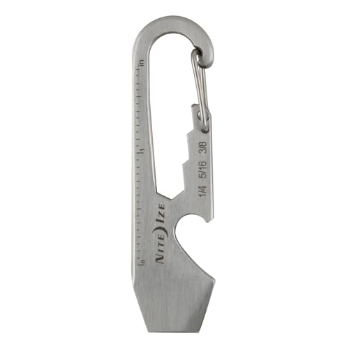 ナイトアイズのドゥーヒッキーは、シルバーで小型のマルチツールです。キーホルダー付きで、栓抜きやボックスカッター機能を持ち、携帯に便利なカラビナも付属しています。