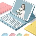 マウス付きiPad Air 11インチ (M3/M2、2025/2024)およびiPad Air第5/4世代用のキーボードケース。カラフルで丸型キーのデザイン、特に女性に人気。霧ブルーの可愛いカラーでBluetooth接続対応。