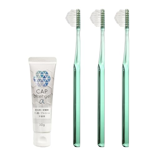 奇跡のオーラルケアセットは、歯磨きジェル〈CAP after gel α〉と歯ブラシ〈トライアングル〉の3本セットです。ミントグリーンのデザインで、口腔内を清潔に保ち、美しい歯をサポートします。
