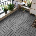 ウッドパネルの15枚セット、サイズ30×30cm、厚さ2cm。腐敗しない樹脂製で、屋外・屋内で使用可能。ジョイント式で簡単に設置でき、1.35平米をカバーします。色はダークブラウンです。