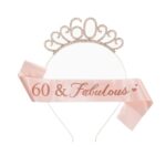 [koundeneko] 60歳 誕生日 王冠 たすき 2点セット キラキラ ローズゴールド ティアラ カチューシャ クラウン 母 妻 女性 誕生日 還暦お祝い プレゼント 写真 撮影 道具 パーティー用品