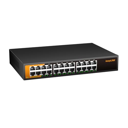 keepLiNK スイッチングハブは、24ポートのGiga対応で金属筐体を採用。静音ファンレス設計により、運用音を気にせず使用可能。 unmanagedタイプで、簡単に接続できるため、ネットワーク環境を整えるのに最適です。