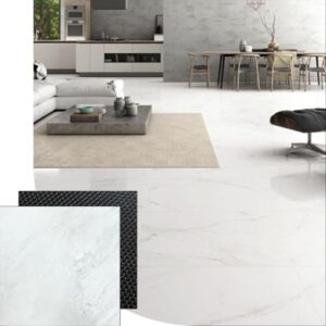 UXPRIN フロアタイル 大理石 置くだけ クッションフロア フローリングマット 吸着タイプ 接着剤不要 フロアシート床用タイル 滑り防止 防水防汚 耐久性強 土足 賃貸 トイレ 玄関 洗面所 店舗 廊下 DIY床材 模様替え ペット対応 PVC素材【48枚約6畳分 / 45.7cm×45.7cm 厚手3mm 大理石柄04】