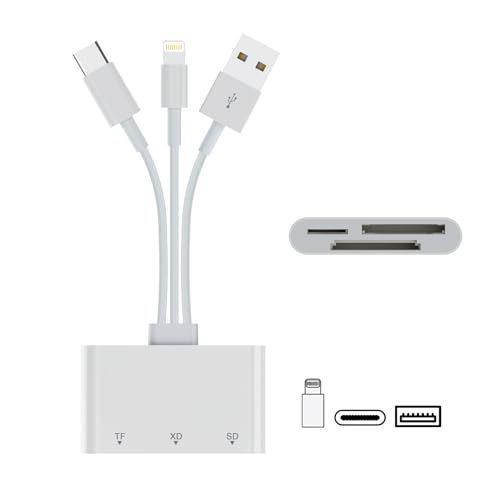 3in1 iPhone SDカードリーダーは、MFi認証の高品質製品で、Type-C、USB3.0、ライトニングに対応。SD、MicroSD、xDカードをサポートし、デジカメからの高速データ転送が可能。iPhone/iPad/Macbook/Androidに対応、設定不要で便利です。