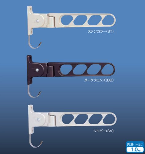キョーワナスタの壁付け物干しKS-DA452ABNは、シルバー色のアルミ製品で、耐久性と軽量さが特徴です。1セットに2本の物干し金物が含まれており、屋外や室内での洗濯物干しに最適です。