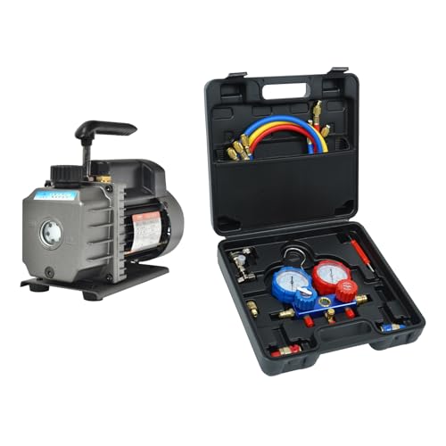 kaitou 電動真空ポンプ エアコン修理 逆流防止機能 カーエアコン 自動車 小型 強力 真空引き 家庭用エアコン ミニポンプ 冷媒工具セット メンテナンス (2点set)