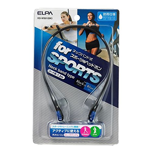 ELPAスポーツ用ヘッドホン、ブラック×ブルー RD-WS01(BK)。サウンドクオリティが高く、快適なフィット感。業務用セットで10個入り。デジタル音響機器に最適なイヤホンです。