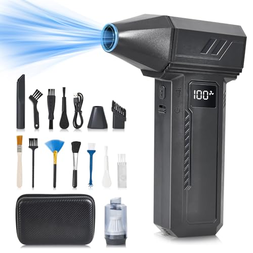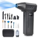 KIVVO 電動エアダスターは、150000RPMの強力な風量でLEDライト付き。Type-C充電式で無段階風量調整が可能。パソコンやキーボード、エアコン掃除に最適なブラック色の便利アイテムです。