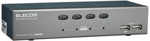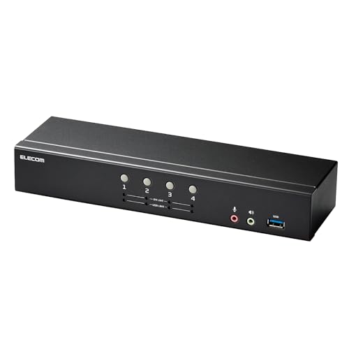 エレコム KVMスイッチ KVM-NDUS4は、4ポートでPCを4台切替可能。DisplayPort接続、4K60Hz対応、エミュレーション機能搭載で快適な操作環境を提供。