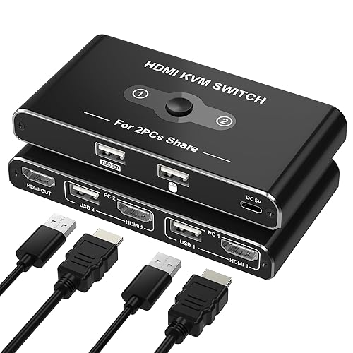 KVMスイッチ HDMI 2入力1出力 KVM 切替器 パソコン2台 キーボード/マウス/ディスプレイ1台共有できる切り替え器 4K@60Hz映像出力 ポートに挿すだけの簡単接続 LEDライト USB 切り替え器 HDMI 切替器 PC切り替え機 キーボード 切り替え 2本のHDMIケーブルと2本のUSBケーブルと1本のType-C電源ケーブル付き 日本語説明書付きの高価買取