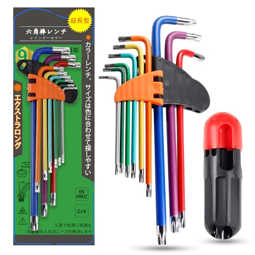 Aicosineg 星形レンチ トルクス レンチ 9本組 T10 T15 T20 T25 T27 T30 T40 T45 T50 レンチセット カラー 星型レンチセット L型 CRV クロムバナジウム鋼 レンチブースター付き 精密 マルチカラー エクストラロング 星形ドライバー ヘックスレンチ 修理工具 デジタル修理 自転車 DIY 車 機械 バイク修理の高価買取ITEM