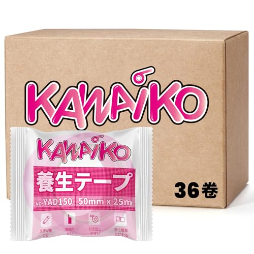 KAWAIKO 養生テープ 桜色は、はがせるガムテープ布で、仮固定や窓ガラスの保護に最適です。50mm x 25mサイズで、36巻パック。建築やリフォーム作業に役立ちます。