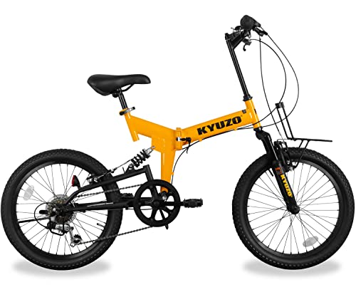 KZ-110は20インチの折りたたみ自転車で、セミファットバイクデザイン。6段変速機能、前後サスペンションを搭載し、安定した走行が可能。キャリア付きで実用性も抜群。カラーはマットブラック。