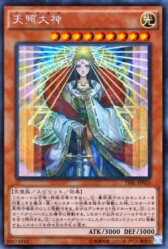 遊戯王カード「天照大神」は、光属性・天使族のシークレットレアで、セット名は「ザ・ダーク・イリュージョン」(TDIL)です。特殊効果やデザインが魅力的なカードです。