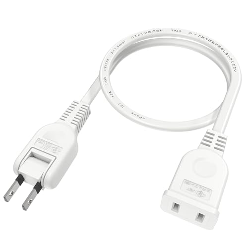 KOZUMUWANの電源タップは、ACアダプタ用の1個口延長コードです。トラッキングや火災予防の絶縁キャップ付きで、安全性が高いです。スイングプラグは180度回転し、2ピンプラグに対応。屋内用で長さは50cm、カラーはホワイトです。