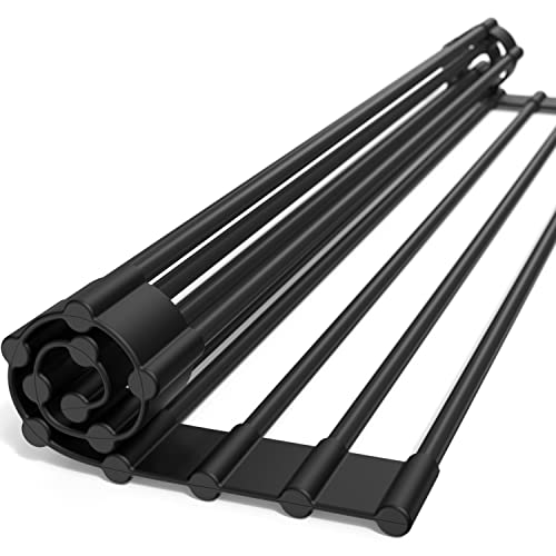 【Latuna ラチュナ】の水切りラックは、シンク上にコンパクトに設置可能。抗菌シリコン製で錆びず、省スペース設計。サイズは42×24cmのワイドタイプで、食器を効率的に乾燥させます。