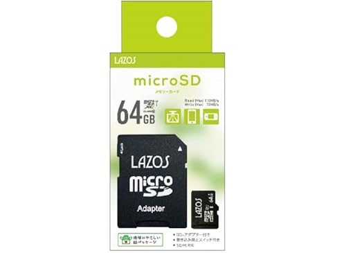 マイクロSD 64GB MicroSDXCカード、クラス10対応。スマホやドラレコに最適で、高速データ転送を実現。メディアテクノのLazos製品。