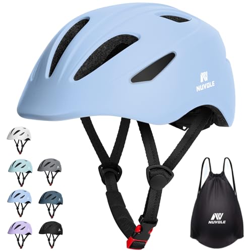 NUVOLE子供用自転車ヘルメットは超軽量で、CEマークとASTM安全規格に適合。3D保護があり、取り出し可能で洗浄可能なクッションを2セット付属。全方位調整が可能で、小学生や幼稚園児に最適です。