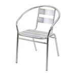 軽量アルミ製のガーデンチェア1脚。UVカット機能付きで耐荷重約100kg。スタッキング可能で、簡単に組立てられます。完成品のため手軽に使用できるチェアです。