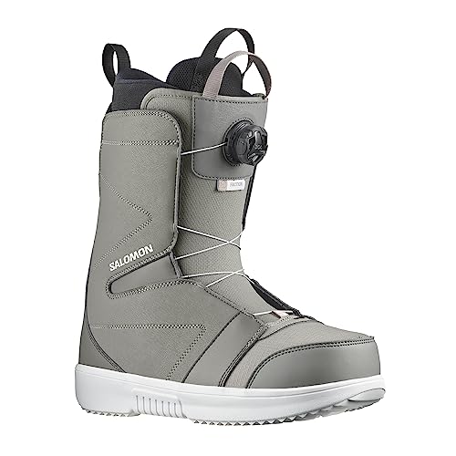サロモンの2023-24年モデル、メンズスノーボードブーツFACTION BOAは、サイズ28.0cm。カラーはSteeple Gray/Pewter/Whiteで、BOAシステムで簡単なフィット調整が可能です。