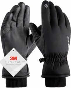 AX スキーグローブ 防寒グローブ アウトドアグローブ 自転車グローブ スマホ対応 3Mシンサレート 防風 撥水加工 滑り止め 登山 トレッキング 通勤 通学 メンズ レディース (M, ブラック)