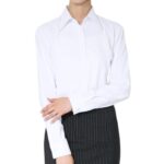 ノーアイロンのレディースニットシャツ。ストレッチ性に優れ、長袖・レギュラーカラーでオフィスや作業着に最適。吸水速乾性もあり、事務服にも使える時短ブラウス。