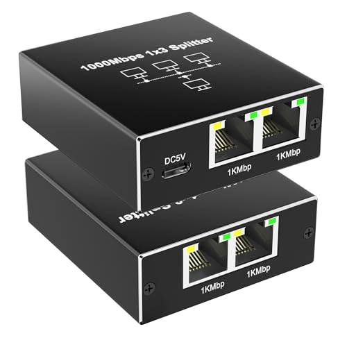 LANハブ1入力3出力、4ポート対応で高速1000Mbps。Cat5~Cat8に対応し、3台同時使用可能なLAN分配器。RJ45接続でネットワーク拡張が簡単に行えます。