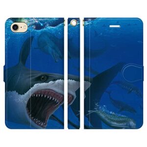 ブレインズ iPhone 13 手帳型 ケース カバー 古代の海 Fujina サメ 鮫 恐竜 海竜 カルカドロン バシロサウルス ドルドン オドベノケトプス メガロドン 折りたたみ カード入れ ポケット iphone13 サーティーン 二つ折り アイフォン アイホン アイフォン13 アイホン13