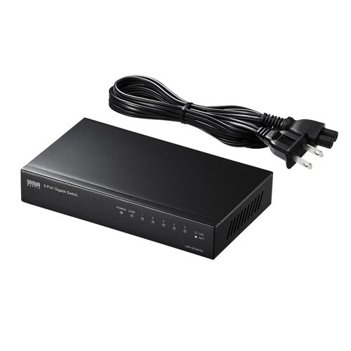 サンワサプライのGiga対応スイッチングハブ(5ポート)は、ループ検知機能を搭載し、安定したネットワーク接続を実現します。データ転送速度は最大1000Mbpsで、高速な通信を支援します。
