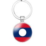 vmcoatduのラオス国旗キーチェーンは、ステンレススチールとガラス素材を使用。男女兼用でOne Size。おしゃれなギフトに最適です。