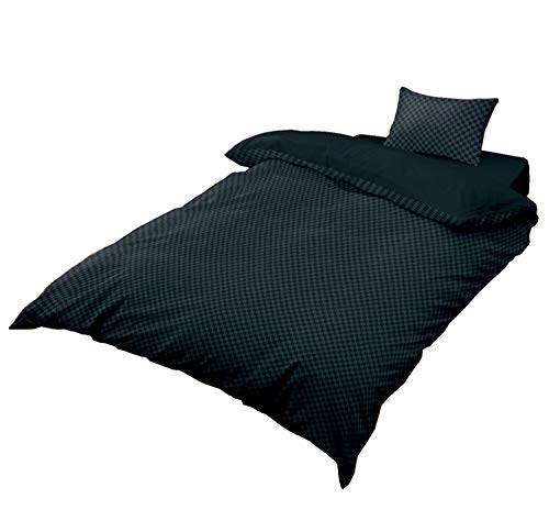 メリーナイトのシングル3点セットは、市松柄のブラックデザインで、掛け布団カバー、ベッドシーツ、枕カバーが含まれています。洗い替えや模様替えに便利で、速乾性とシワになりにくい素材が特長です。