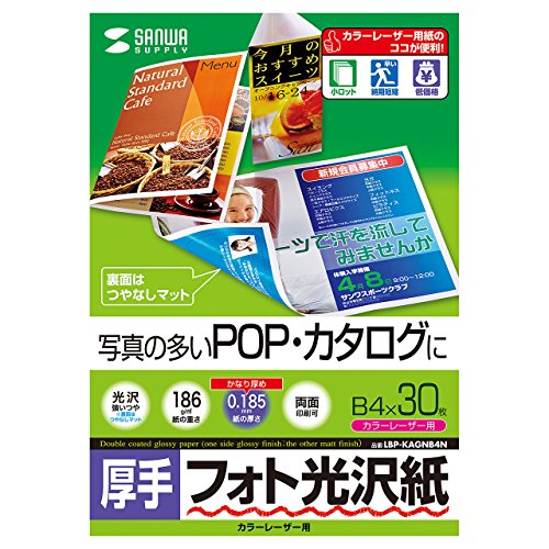 サンワサプライ(Sanwa Supply) カラーレーザー用フォト光沢紙・厚手 B4 30シート入り LBP-KAGNB4Nの製品情報