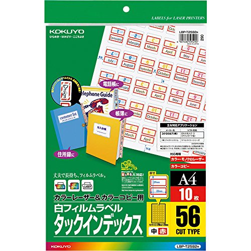 コクヨ カラーレーザー カラーコピー タックインデックス フィルムラベル 中 赤 LBP-T2592Rは、鮮やかな赤色のフィルムラベルで、レーザーコピー機で印刷可能。ラベルは剥がれにくく、整理整頓や分類に最適です。