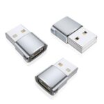 USB CメスからAオスの変換アダプター3パック。iPhoneやiPad、Samsung Galaxyなど対応。高速充電とデータ転送を実現し、アルミ合金製で耐久性抜群。
