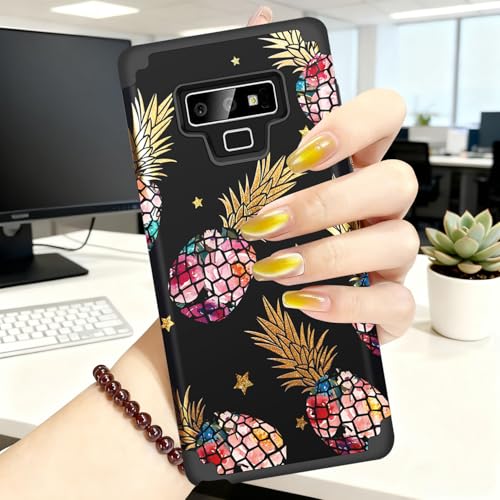 Galaxy Note 9 ケースは、パイナップルデザインのスリムハイブリッド構造。ハードPCとソフトシリコンで耐衝撃性抜群。6.4インチ、女性向け、ブラックカラー。
